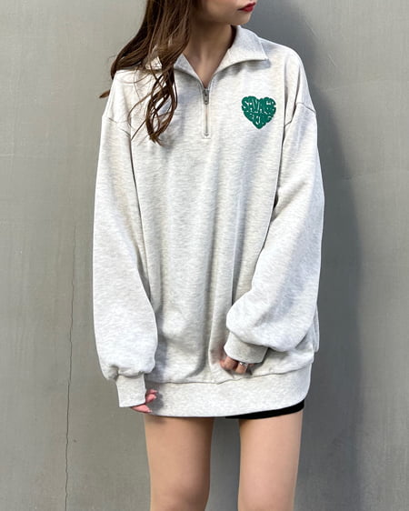 胸元のミニサイズのハートロゴもさりげないポイントに。