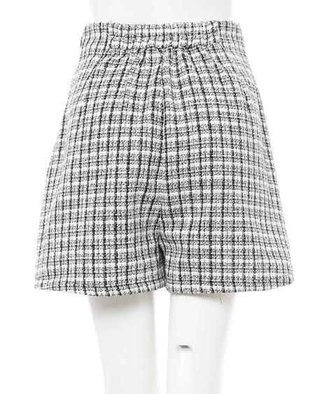 ショートパンツの上に同じ生地を重ね、きちんと感のある1枚に仕上げています。