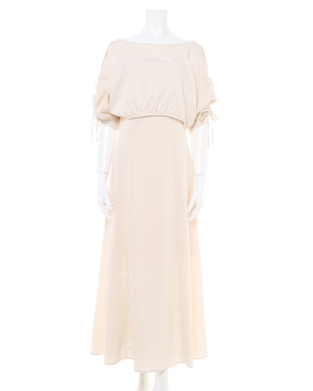 ワンピースは、高めのウエストラインから広がるフレアデザインで上品な雰囲気。