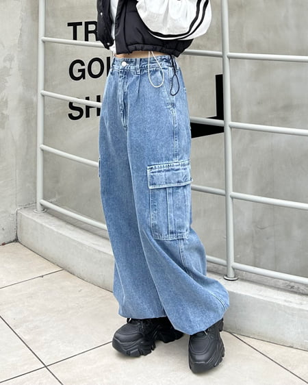 トレンドのカーゴパンツをデニムでカジュアルダウン。