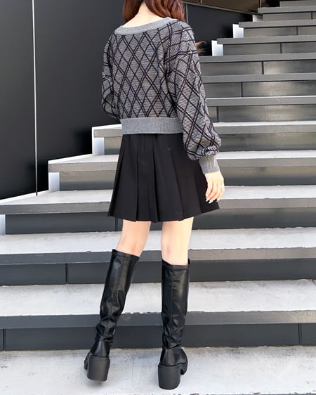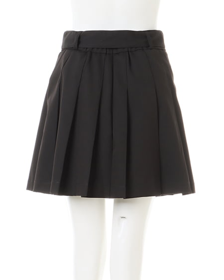 スクールガールのようなプリーツスカートは裏地がパンツデザインになっているので
