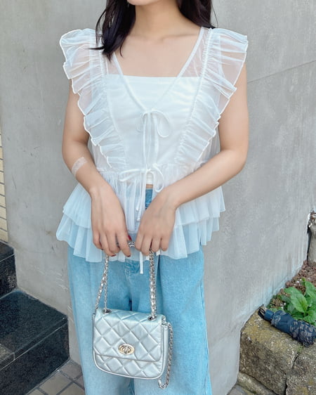 ショルダーにたっぷりとしたフリルでアクセントををプラス。
