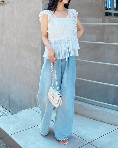 羽織るだけで様々なスタイリングに活躍できるフリルベスト♪