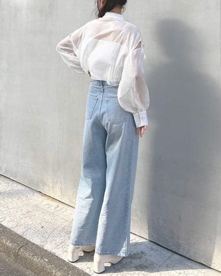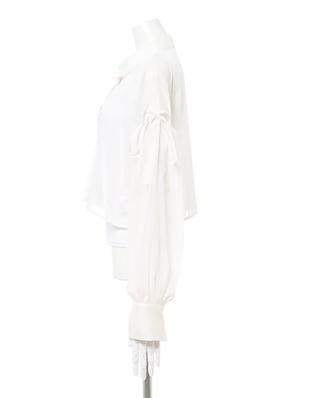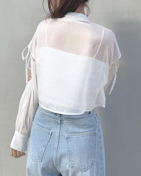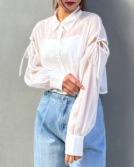 袖部分のスリットが程よい肌見せを叶えるシアーシャツ。