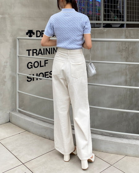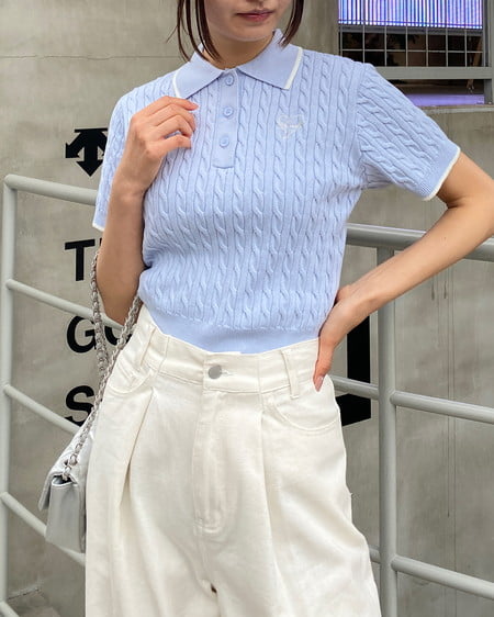 トレンドのケーブル編みをポロカラーに落とし込み、