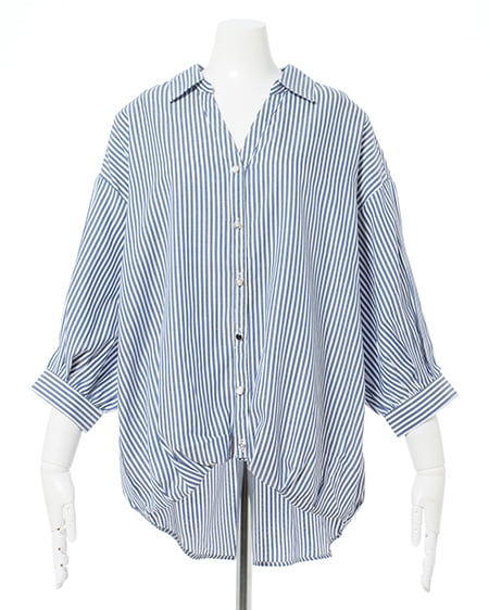 フロントの裾部分にタックを入れたふんわりシルエットが魅力のシャツ。