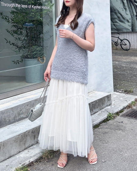 チュールティアードスカート
