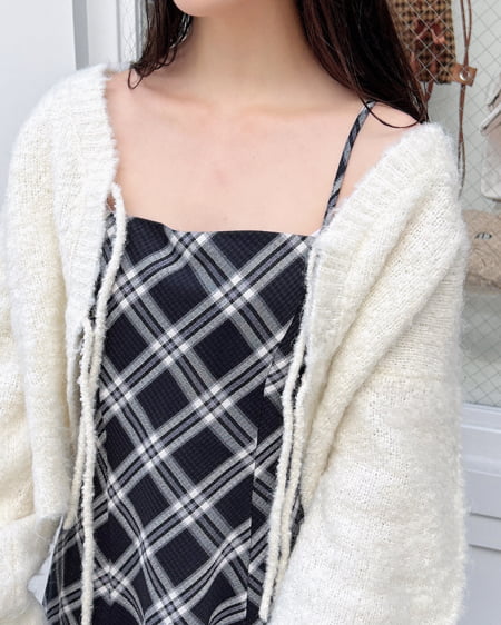 キャミワンピにボレロ風に羽織れば、大人ガーリースタイルに。