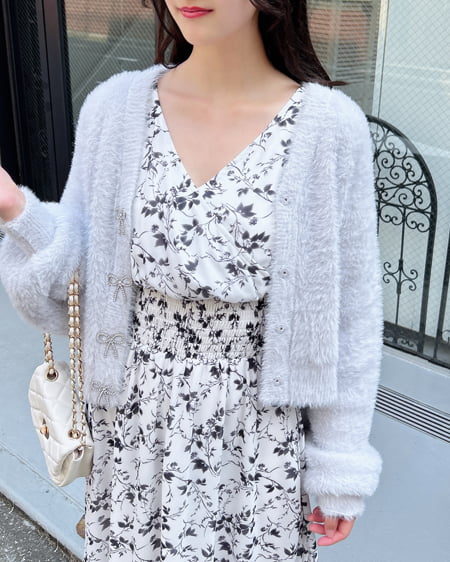 毛足の長い艶やかな素材が、コーディネートを品よく、やわらかな表情に。