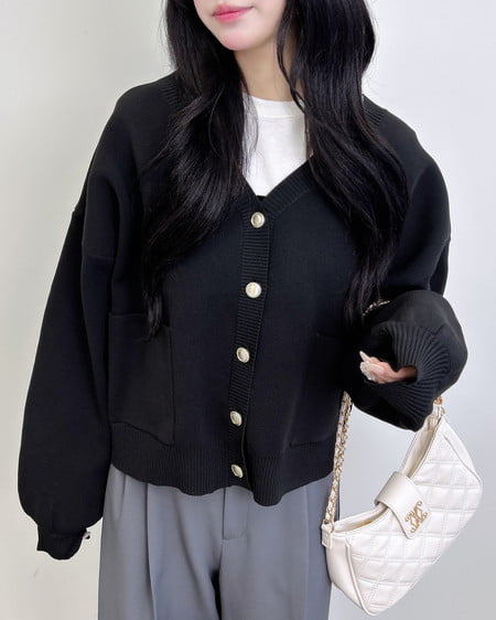Vネックスポンディッシュニットカーディガン