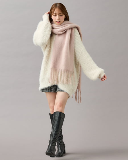 ボタンを全て留めてチュニックニットのように着てもかわいい。