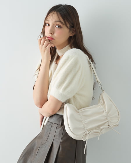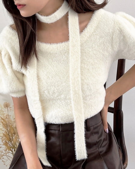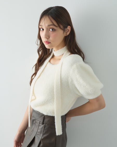 クルーネックにパフスリーブで、シンプルでコンパクトなシルエット。