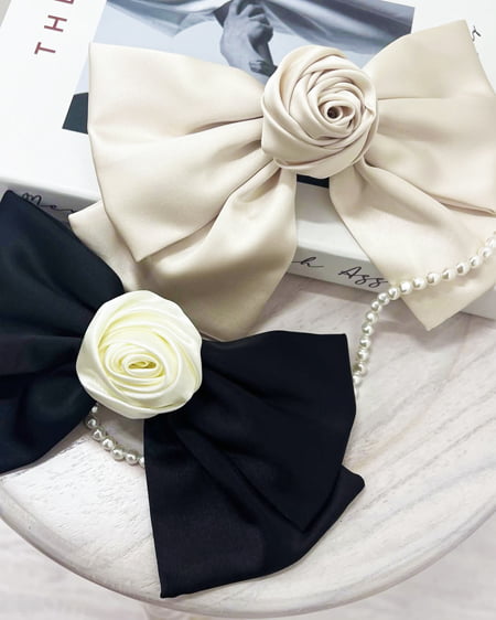 立体的な中央のローズモチーフがエレガントなアイテムです。