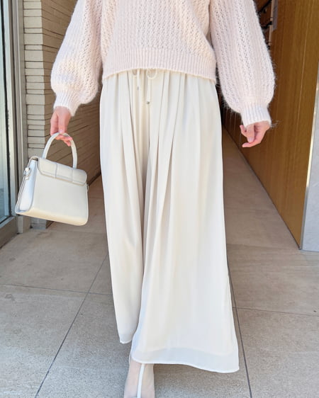 歩く度にふわりと広がる大人フェミニンなスカンツ。