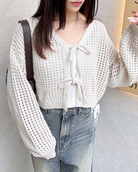 フロントをリボンで結ぶデザインでサッと羽織れます。