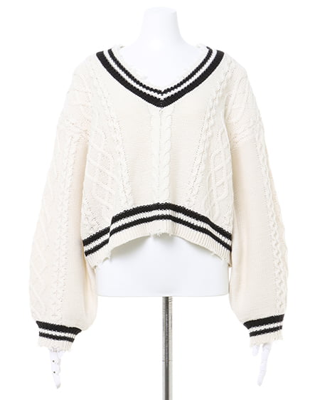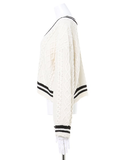 首周りがすっきり見える深めのVネックで、合わせるインナーによっていろいろな表情のレイヤードが楽しめます。