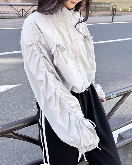 袖のボリューム感とシャーリングリボンがデザインのポイントです。
