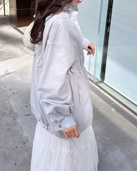 ウエストのドロストを絞りスタイルアップ&こなれ効果も。