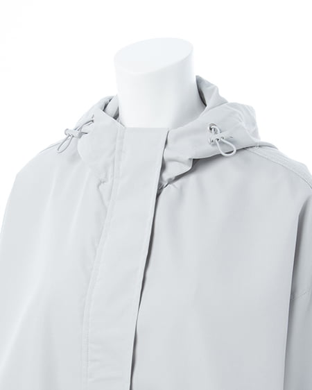 ジップをあげフードを立たせると一気にスポーティーな印象に。