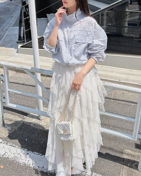 胸元にあしらったフラップポケットでワークテイストをプラスしています。