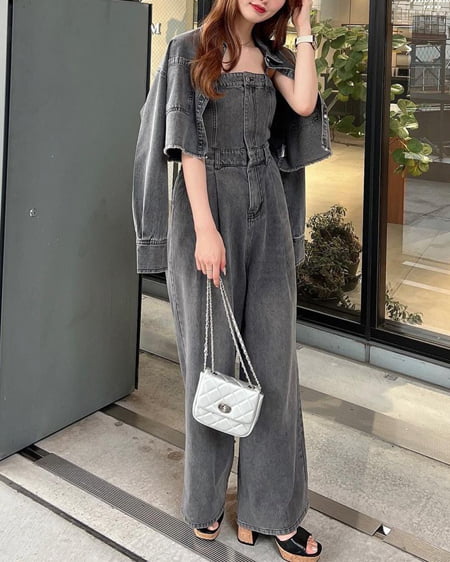 同色系のデニムのパンツ合わせでセットアップ風にも◎