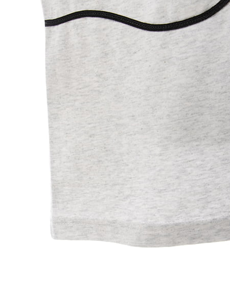 くるくるとしたコードを縫い付けて曲線を表現したデザイン性のあるTシャツ。