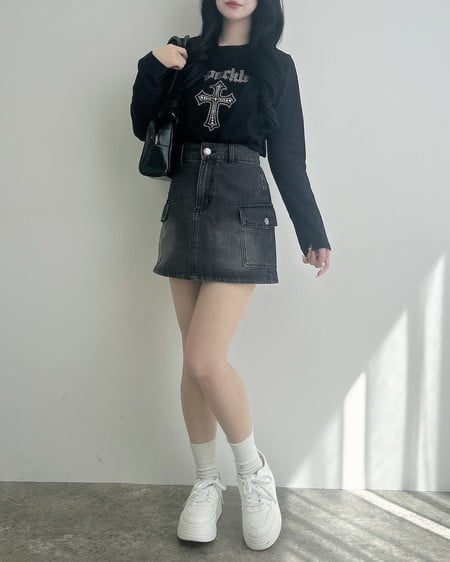 どんなトップスにも合わせやすいデニムスカートはワードローブの必須アイテム。