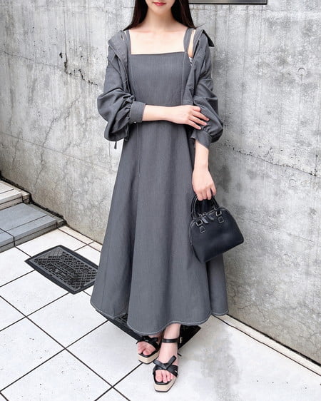 ワンピースは高めのウエスト位置から広がるシルエットが◎。