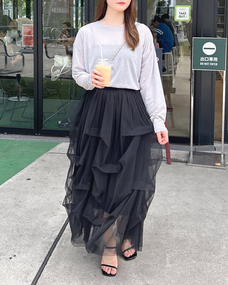 【ゆるっとシアーなトップスが体型カバー&紫外線対策に。】