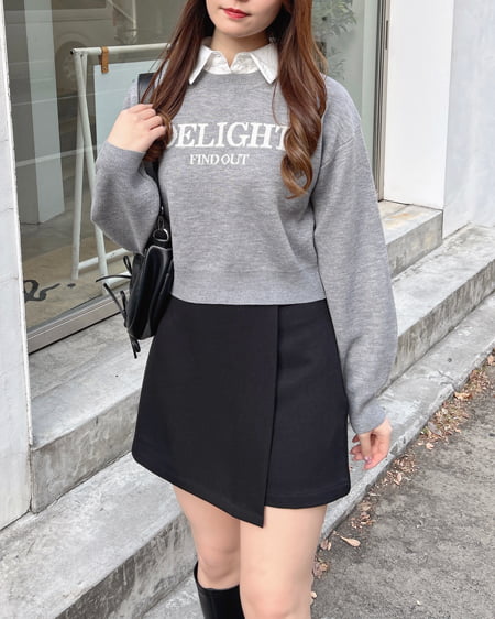 シャツレイヤードスタイルが1枚で叶う、おしゃれ上級者見えニットトップスです。