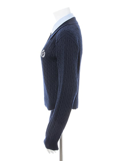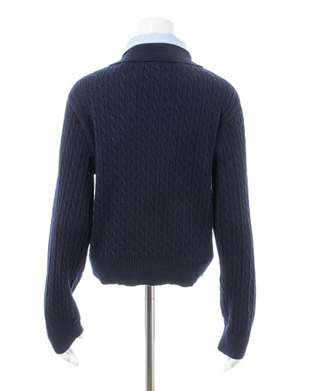 【ダブルカラーと刺繍の組み合わせがトレンドライクなケーブルポロニット】