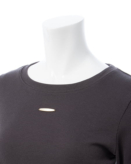 シンプルな無地に映えるフロントのゴールドプレートがアクセントに。