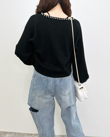 パール付ニットカーディガン