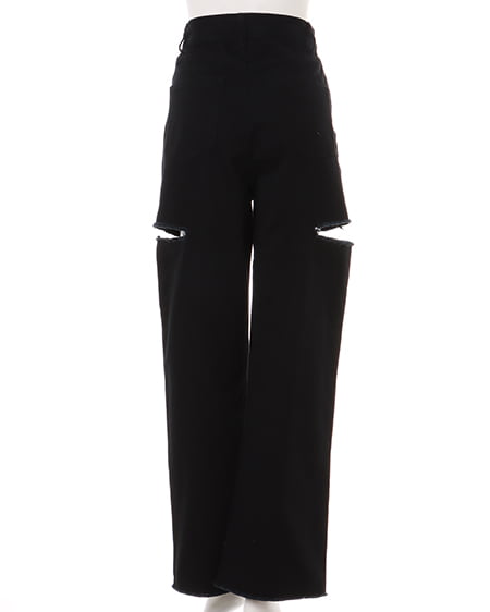 ・ワイドなシルエットのデニムにサイドカットを施したこなれ感満載のアイテム。