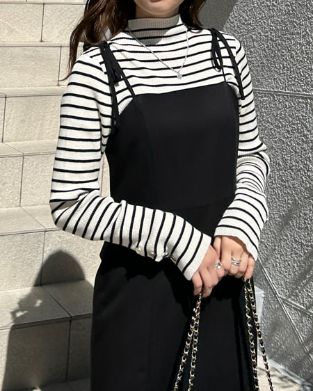 高めの位置で切り替えたウエストでスタイルアップを狙えるのも◎。