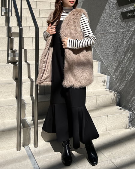 裾へ向かって広がるマーメイドシルエットで気になる腰回りをすっきり見せてくれます。
