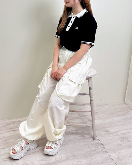 襟元や袖口をバイカラーで仕上げ、メリハリのある1枚に仕上げています。