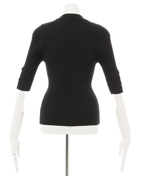 伸縮性のあるリブニットで体に優しくフィットしすっきりとしたシルエットに。