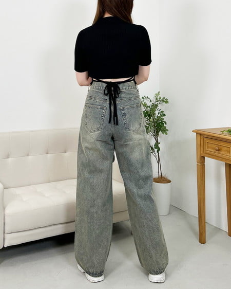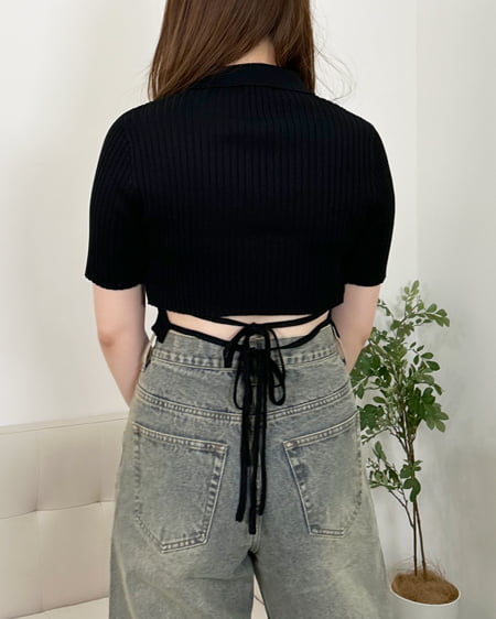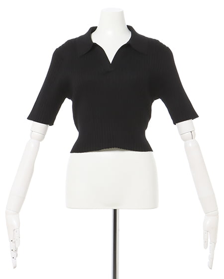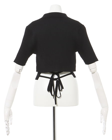 - 襟付Backウエストリボン半袖ニット(OUTLET)