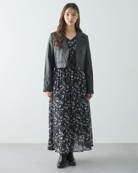 カシュクールデザインとシャーリングでメリハリのあるシルエットに仕上げています。
