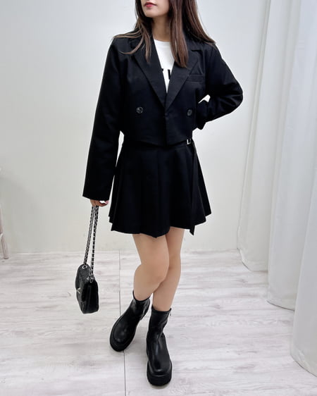 ショート丈なのでボトムはハイウエストなものをあわせるとGOOD。