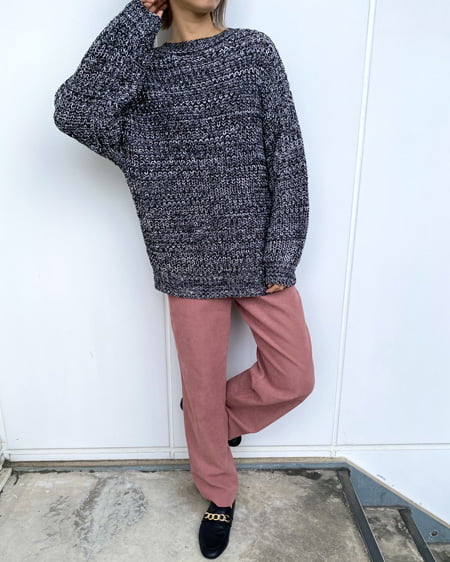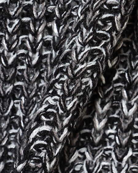 ランダムな色合いのメランジ糸を使用した表情のあるニット。