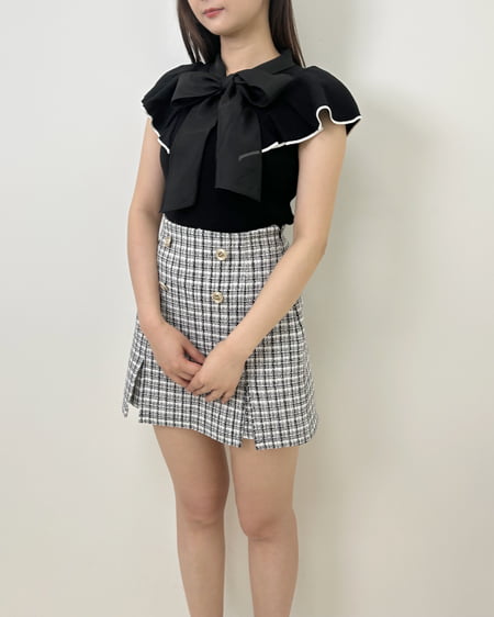 ・フリルとボウタイが顔周りを華やかに魅せる、愛らしさ溢れる1枚です。