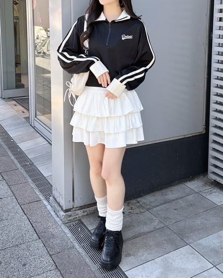 ジップの開け具合で着こなしの幅が広がるのも◎。