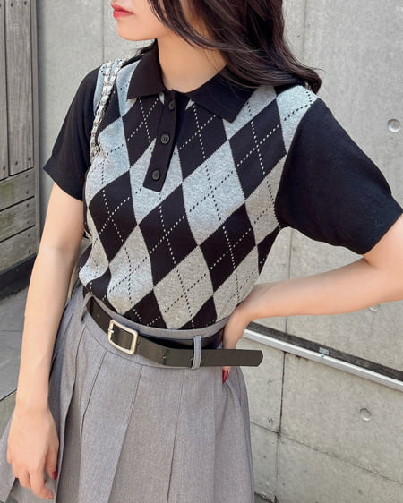 アーガイル柄がトレンド感を加速してくれるニットトップス♪