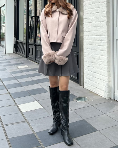 ・フェミニンな着こなしに最適な、高級感のあるファー付きショートコートです。
