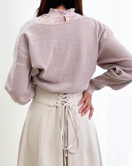 【透け感のあるレースとカシュクールの組み合わせが上品な甘さのニット】