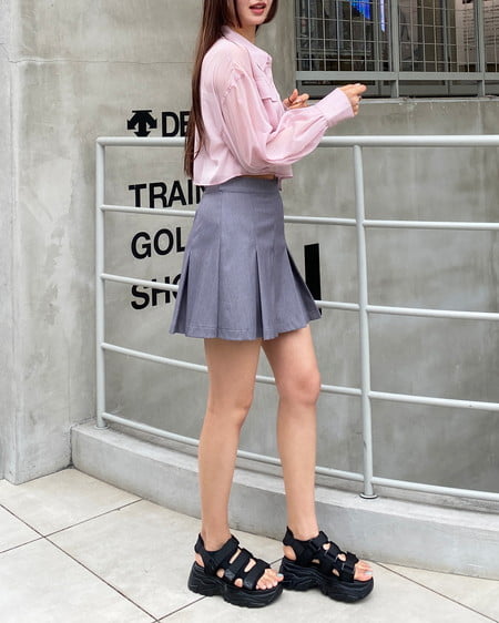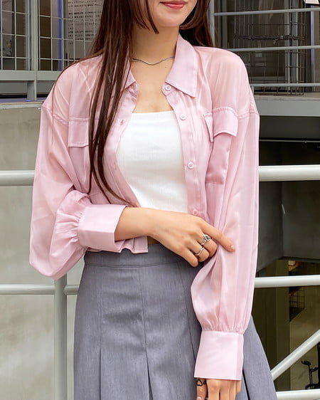 清涼感のあるシアーシャツをショート丈でトレンドライクに。
