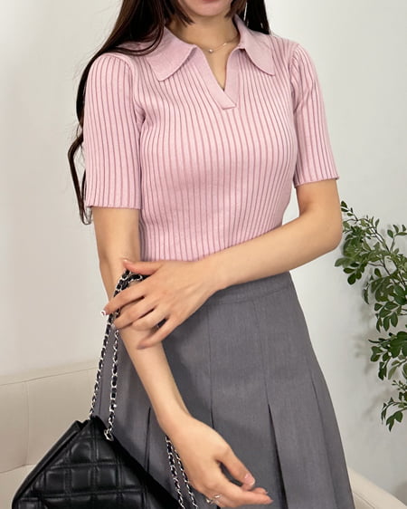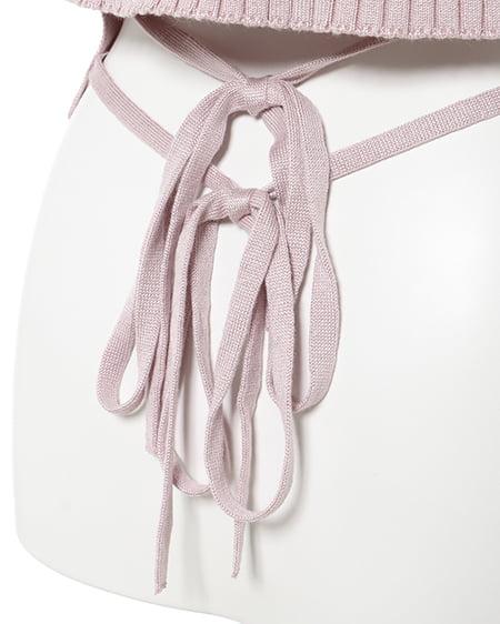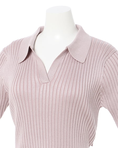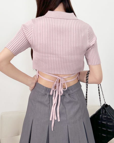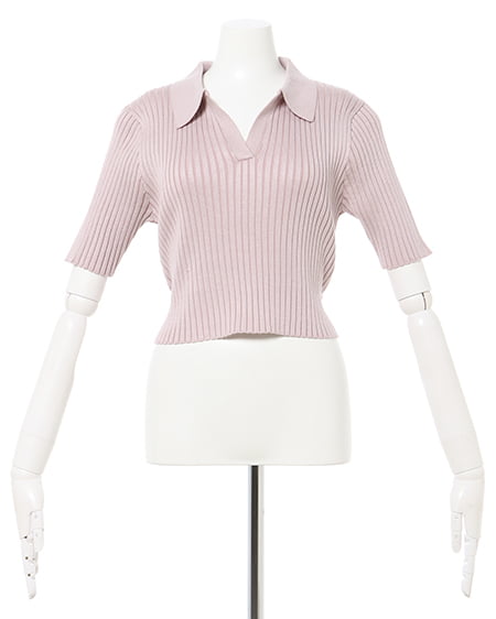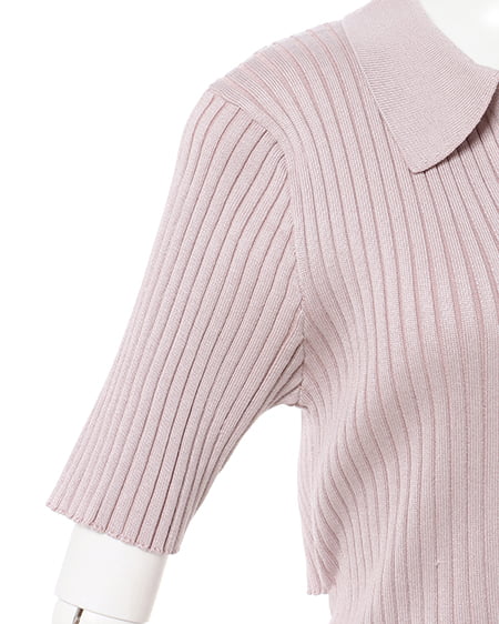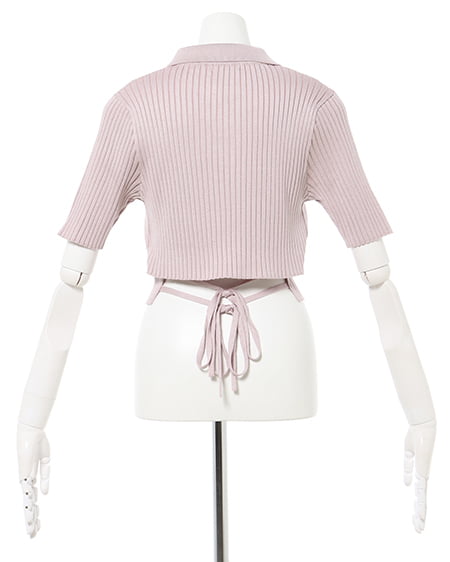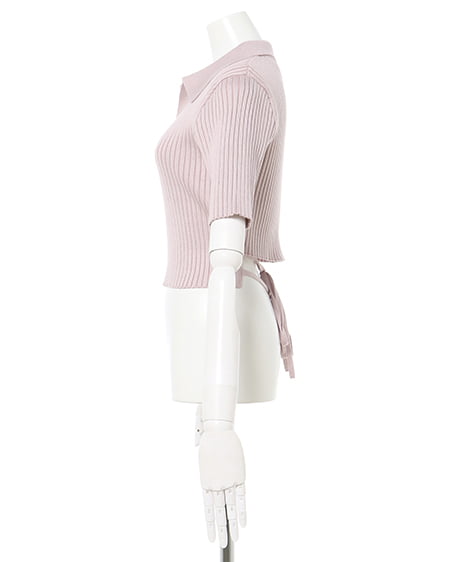 - 襟付Backウエストリボン半袖ニット(OUTLET)