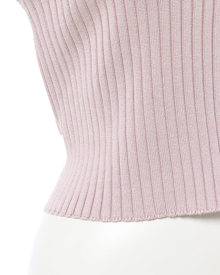 襟付Backウエストリボン半袖ニット(OUTLET)